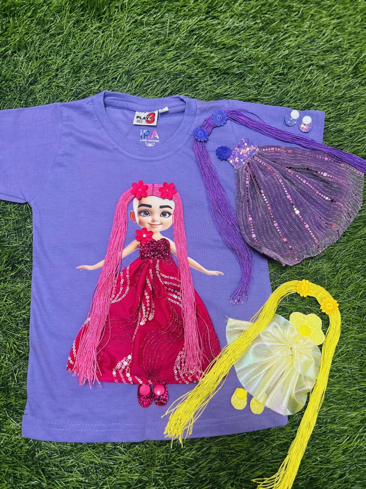 Magical Doll Fashion T-Shirt Set – Purple & Pink Combo