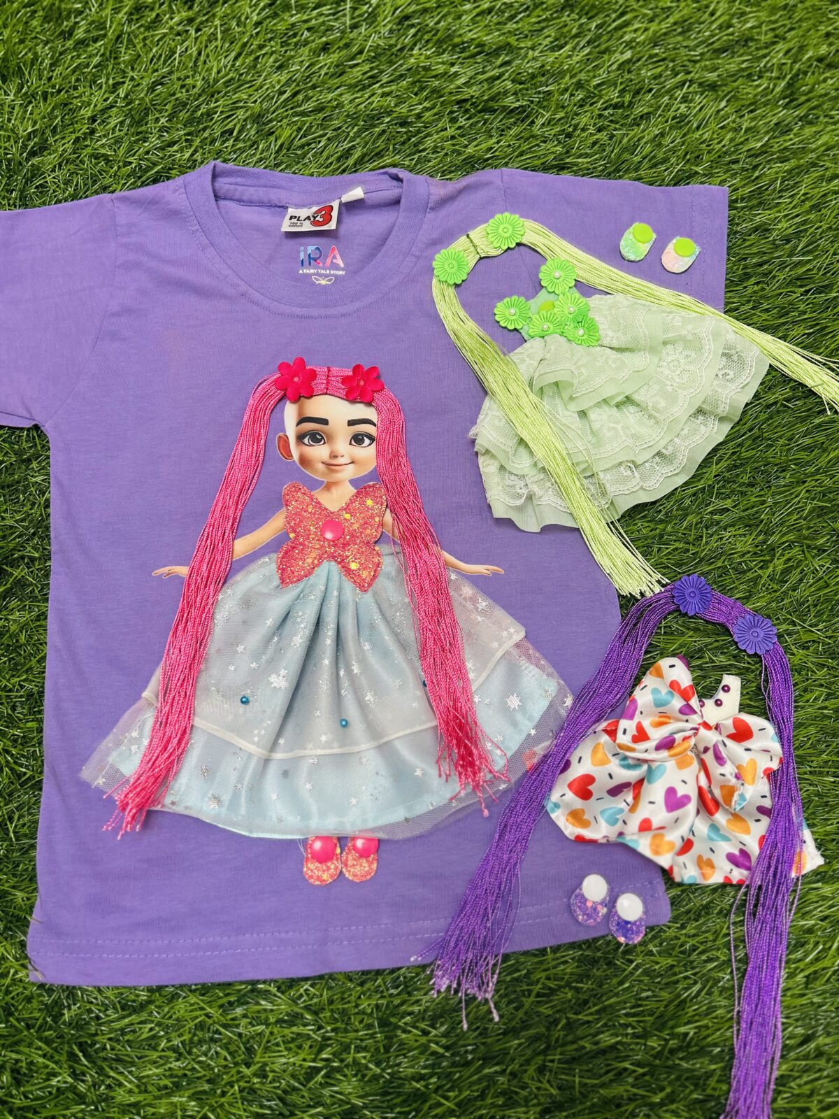 Magical Doll Fashion T-Shirt Set – Dark Purple & Pink Combo