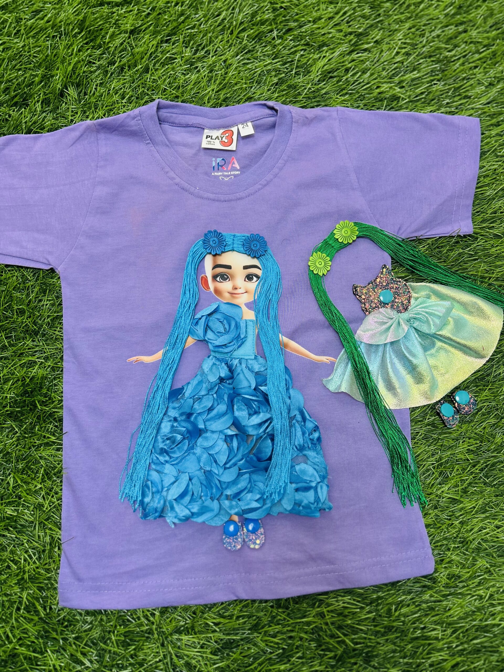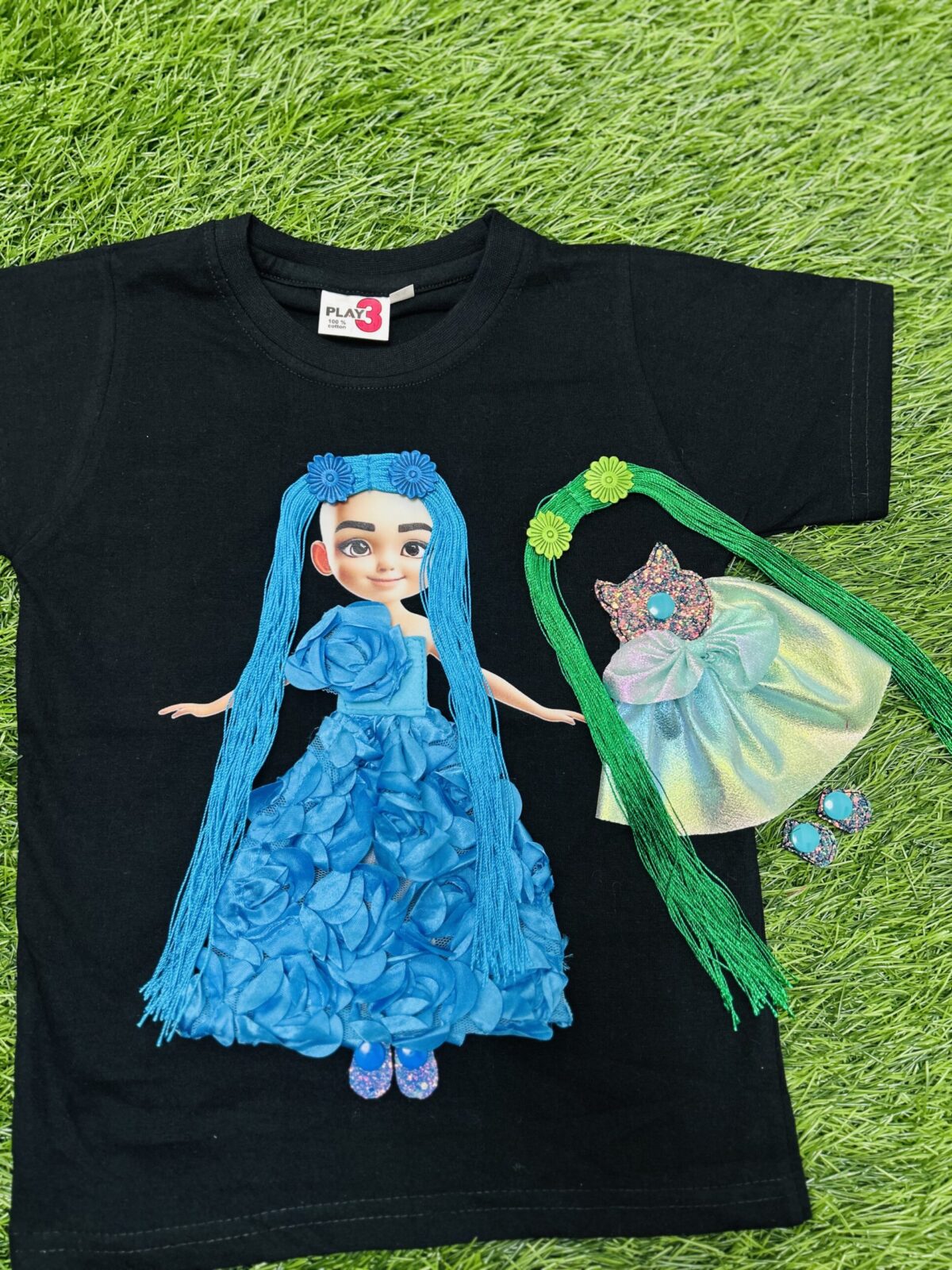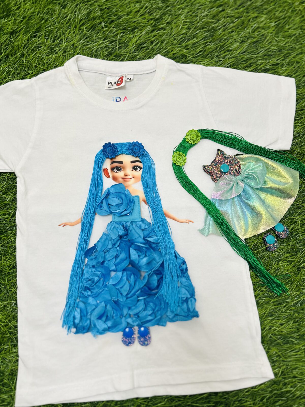 Magical Doll Fashion T-Shirt Set – Blue & Green Combo