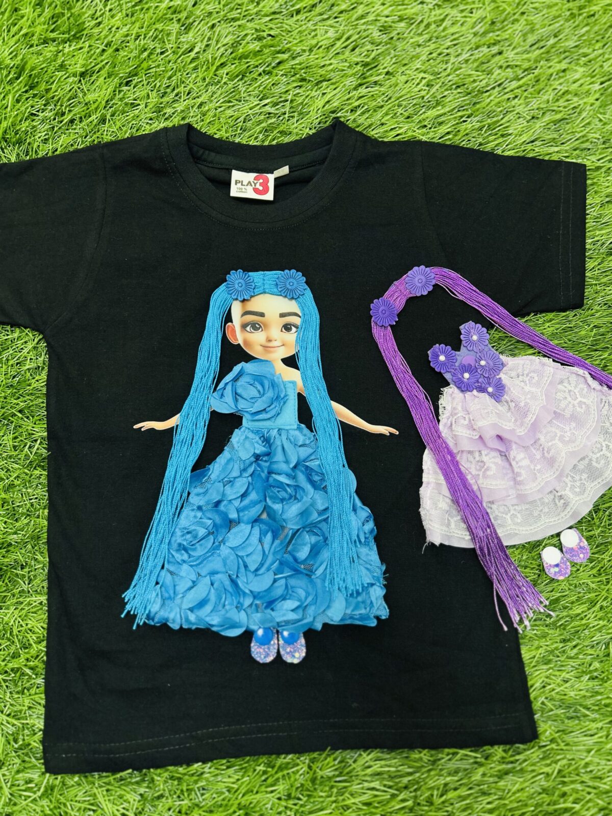 Magical Doll Fashion T-Shirt Set – Blue & Purple Combo