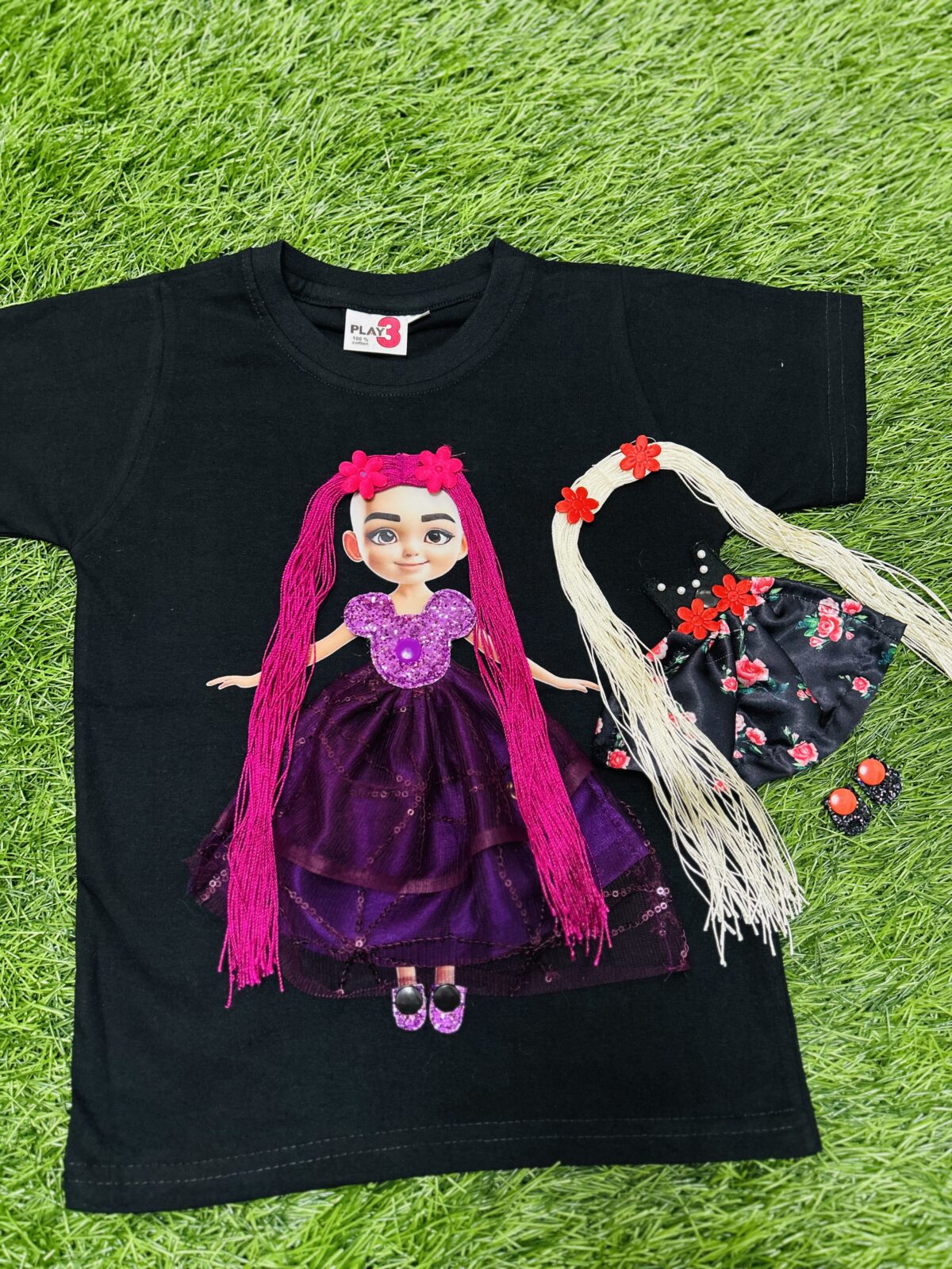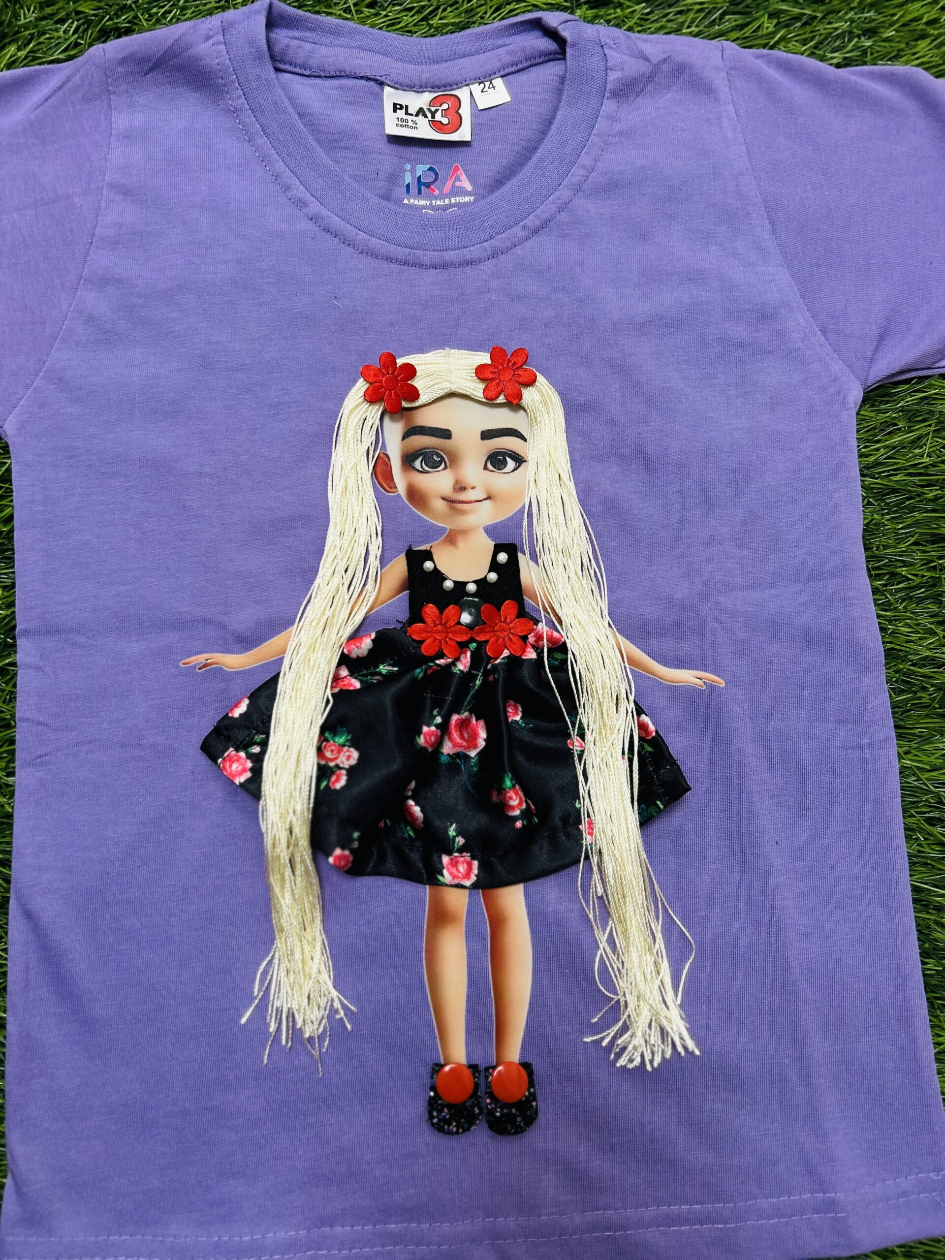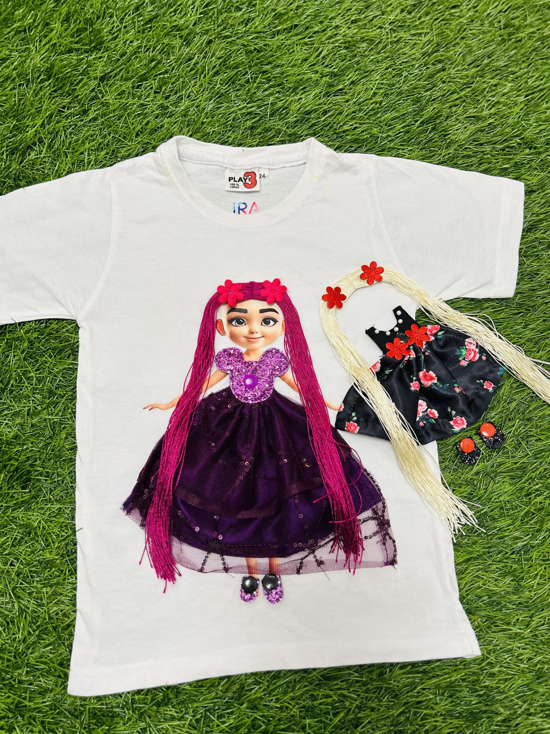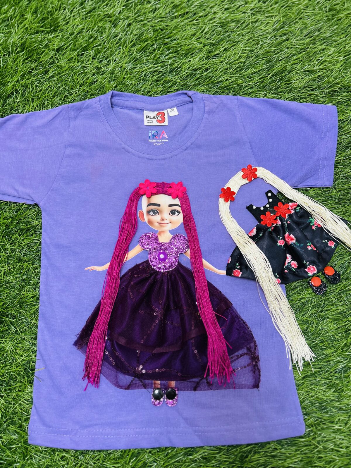 Magical Doll Fashion T-Shirt Set – Dark Purple & Red Combo