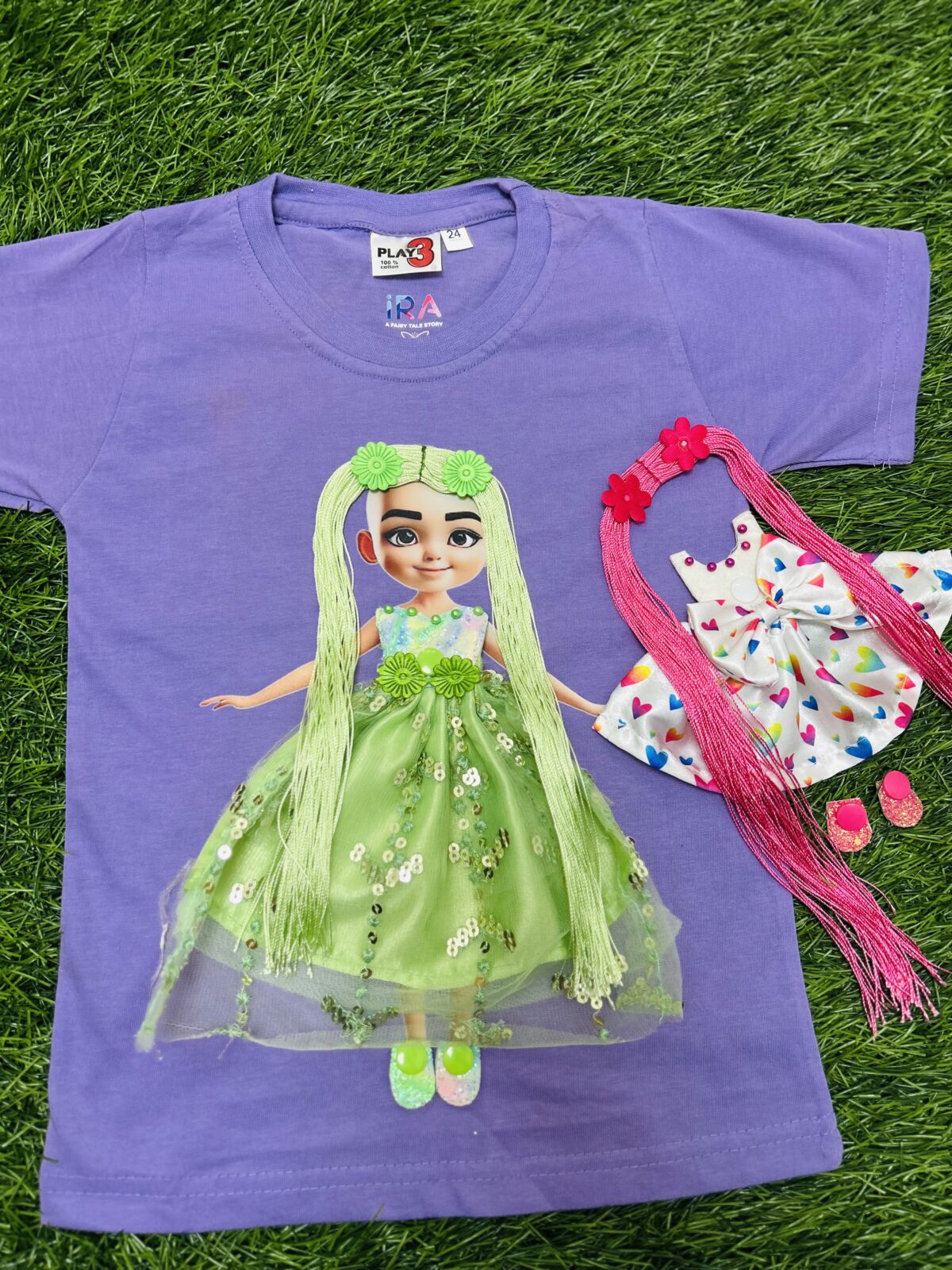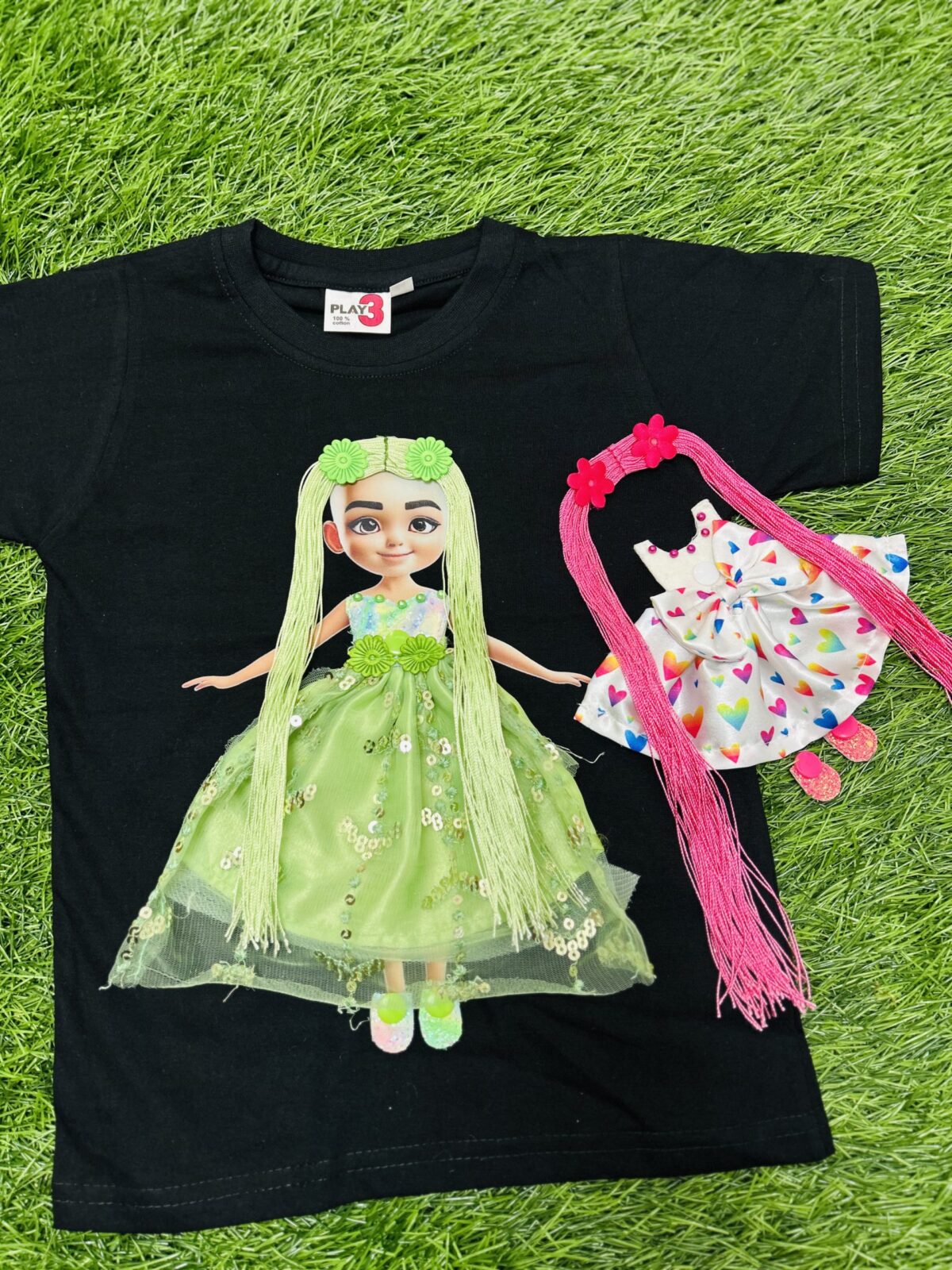 Magical Doll Fashion T-Shirt Set – Green & Pink Combo