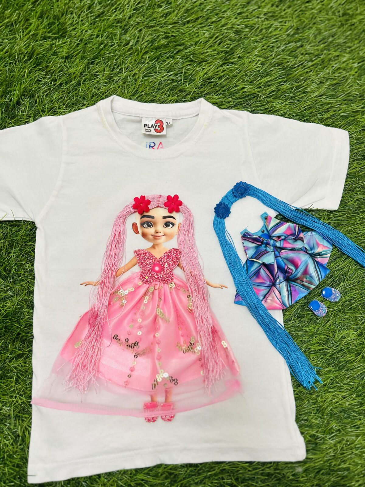 Magical Doll Fashion T-Shirt Set – Pink & Blue Dress Combo