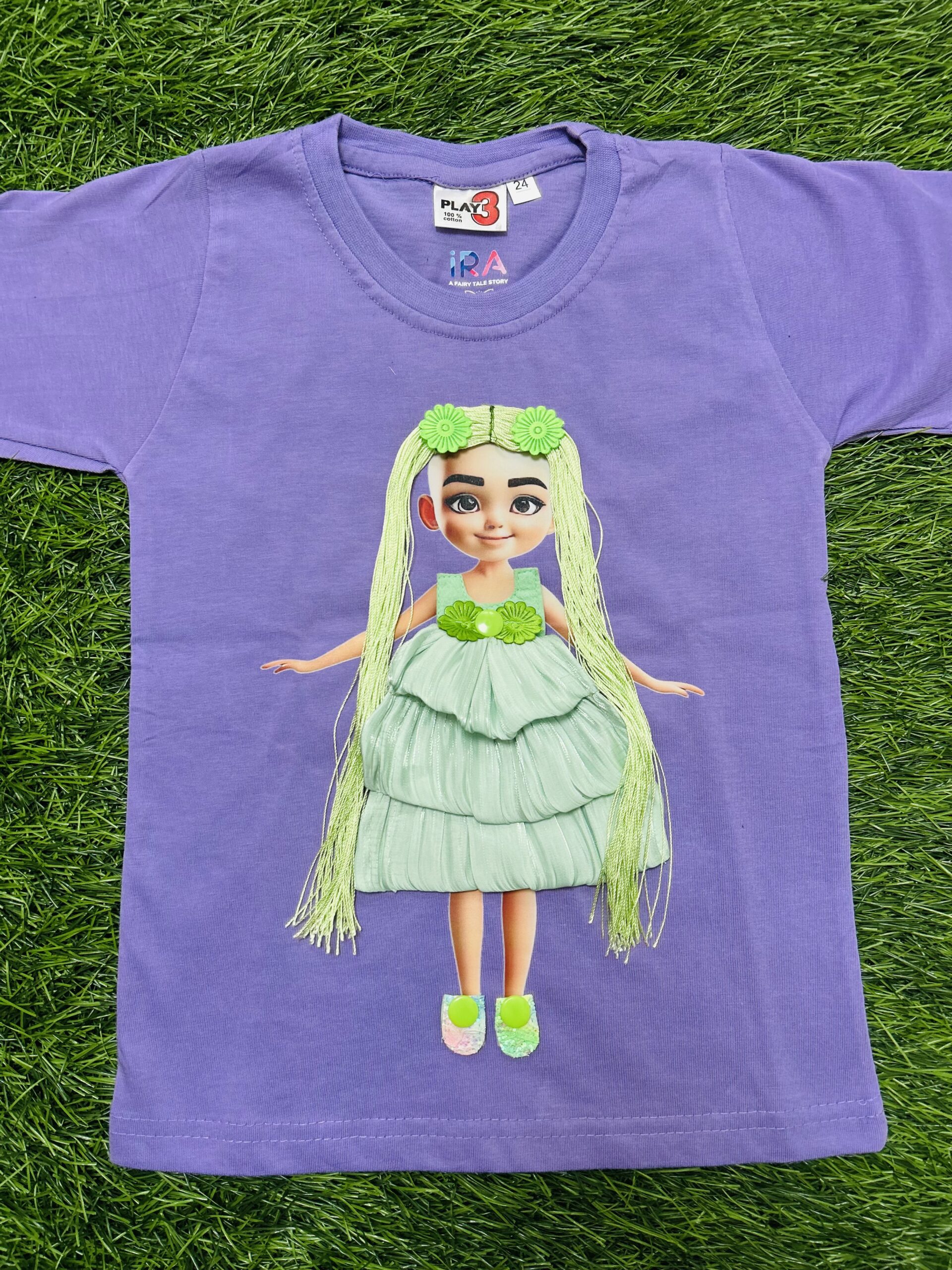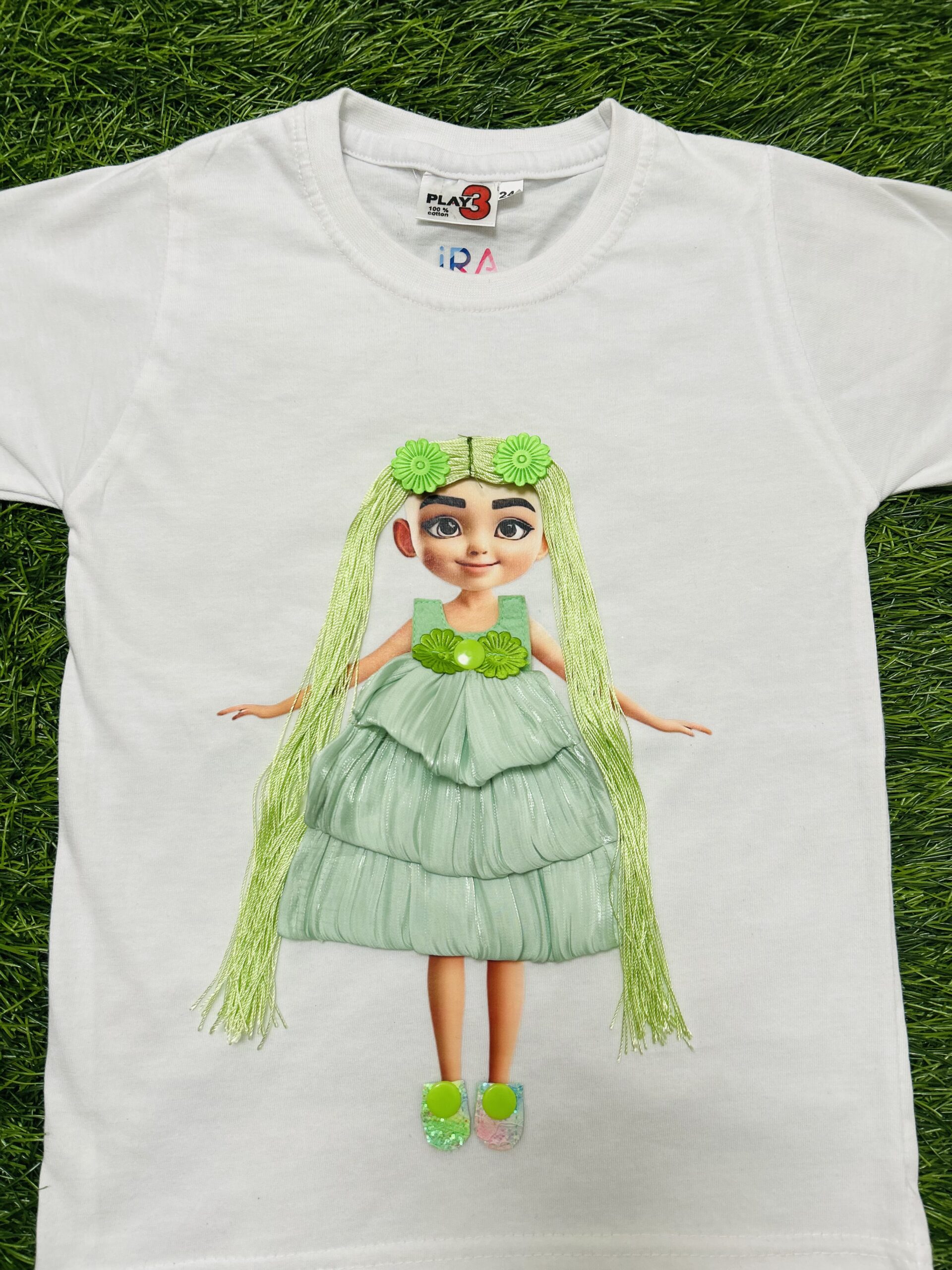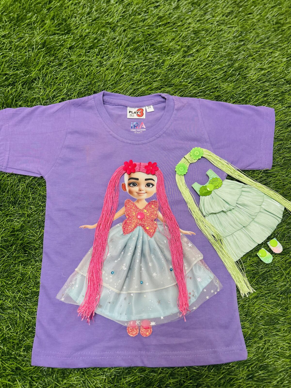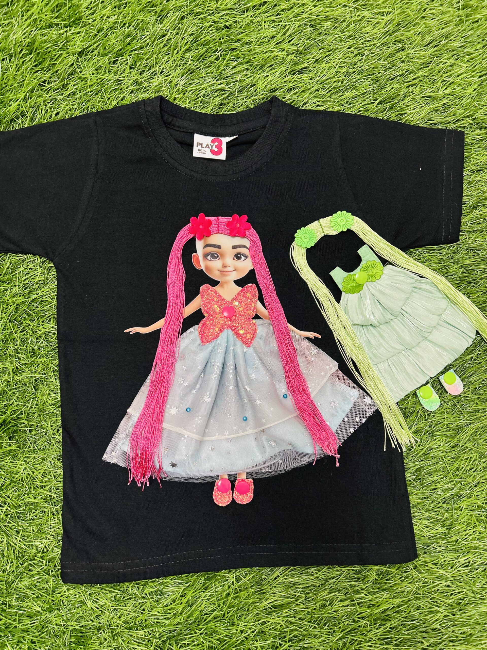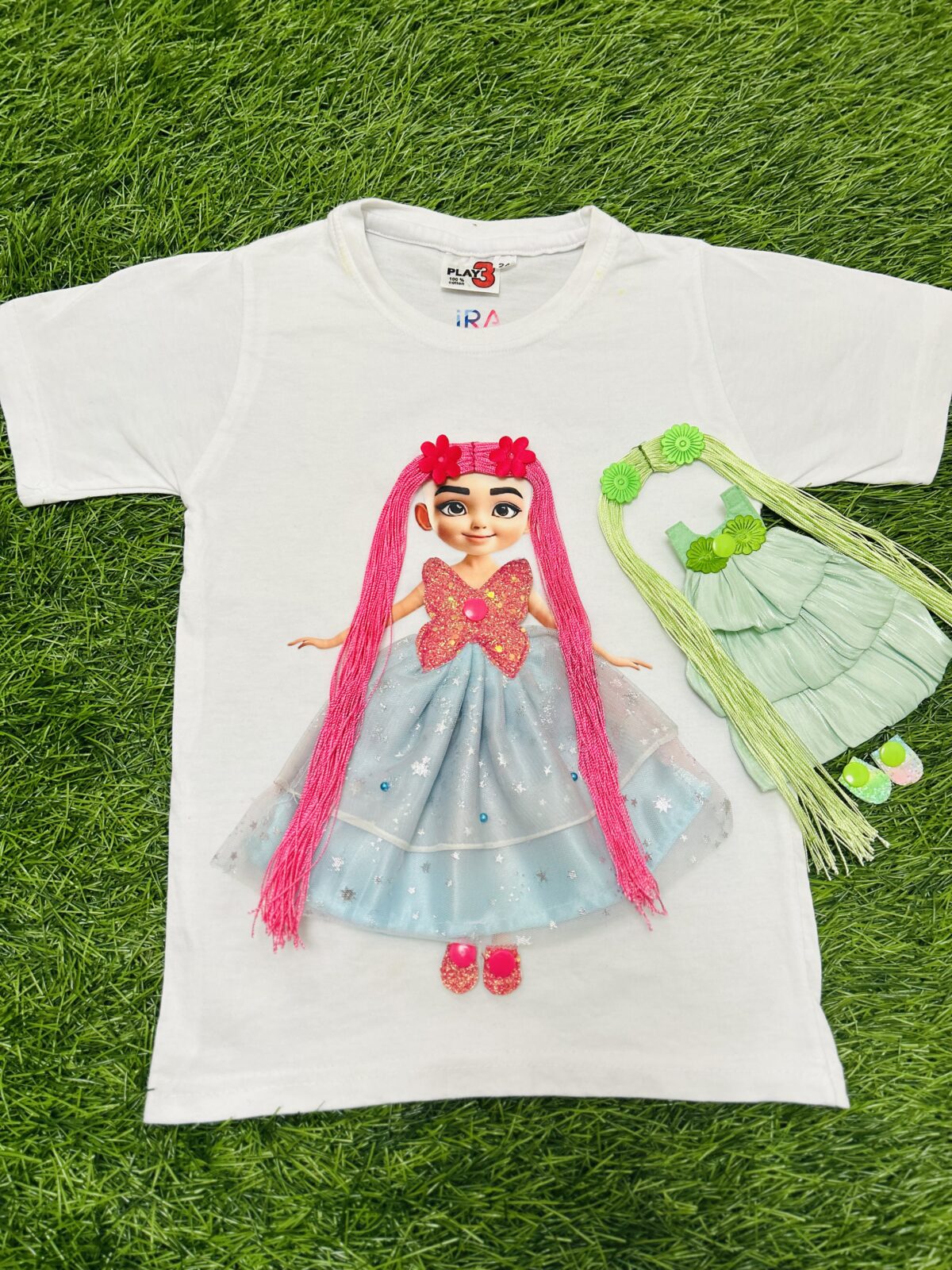 Magical Doll Fashion T-Shirt Set – Pink & Organza Frill Green Combo