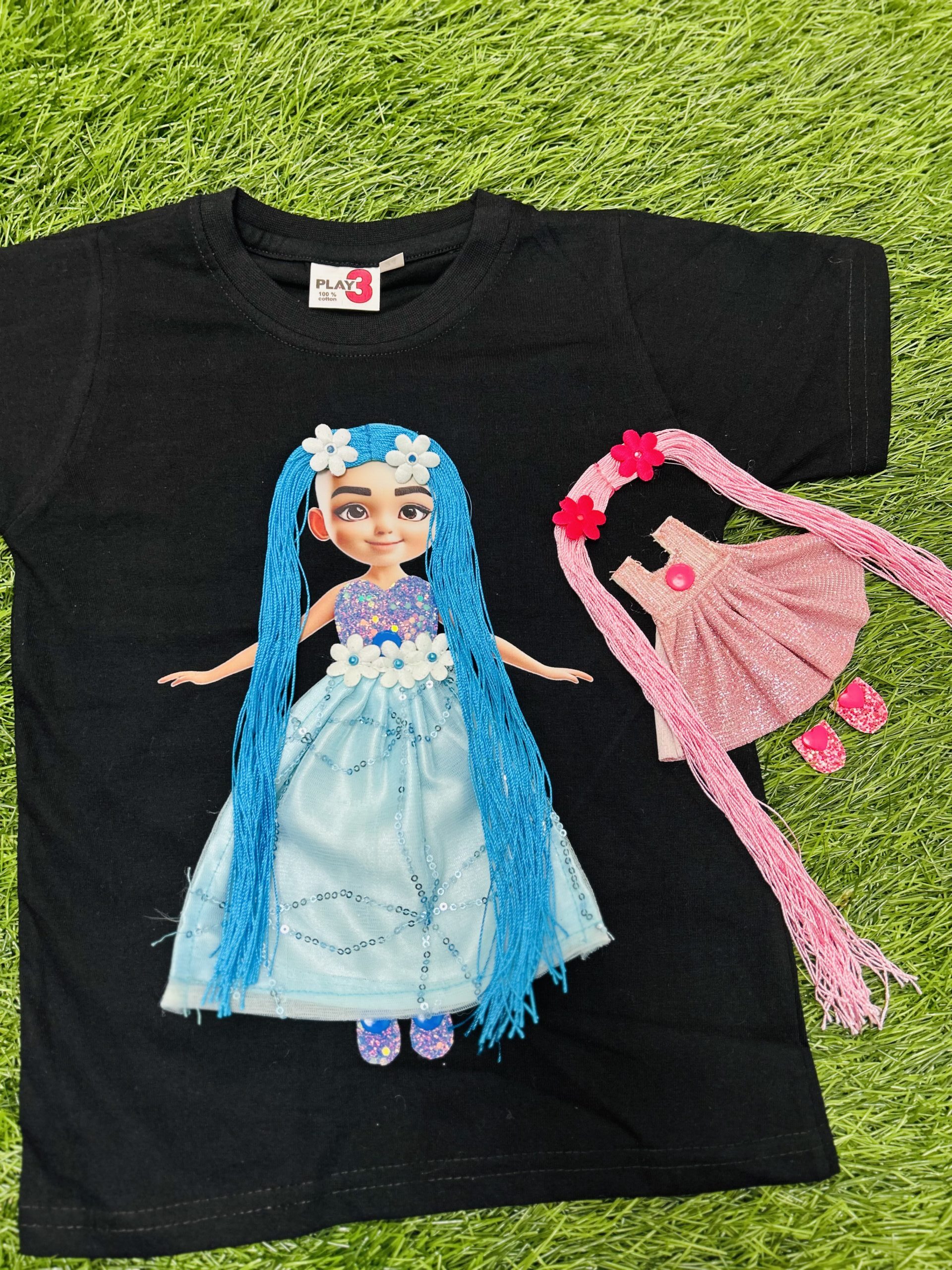 Magical Doll Fashion T-Shirt Set – Sky Blue & Pink Combo