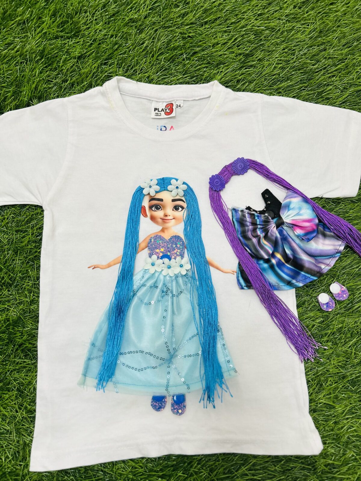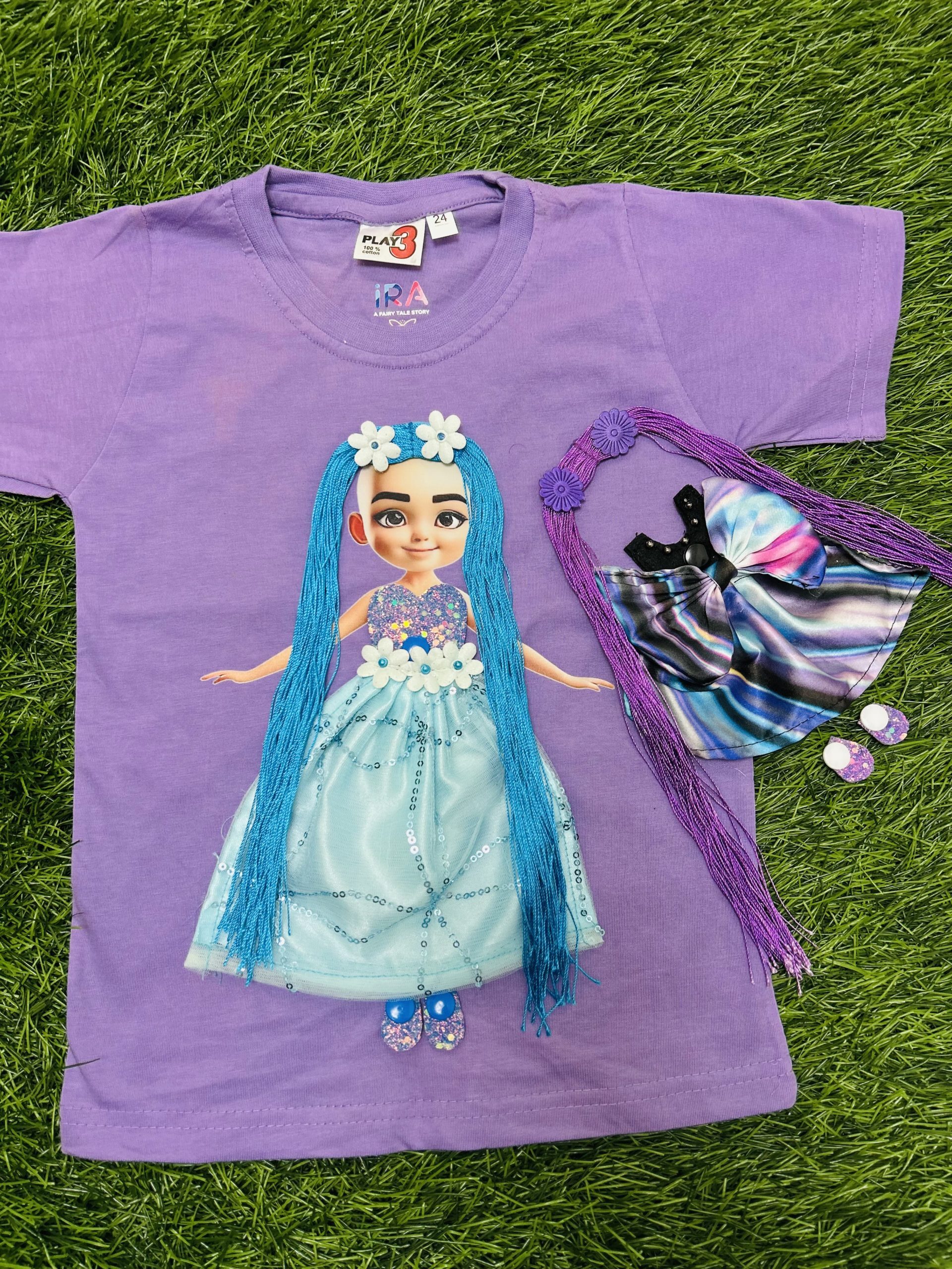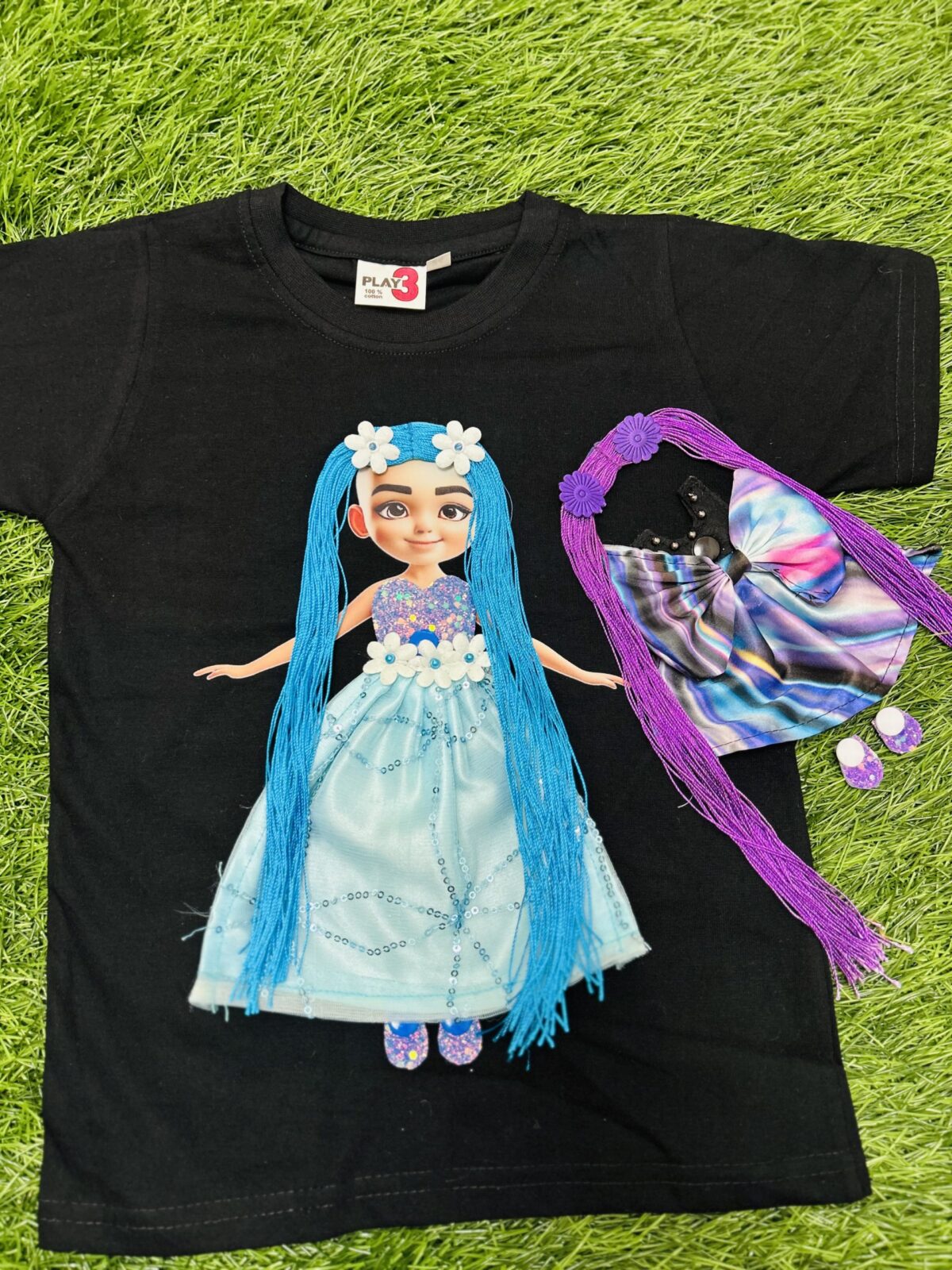 Magical Doll Fashion T-Shirt Set – Sky Blue & Black Combo