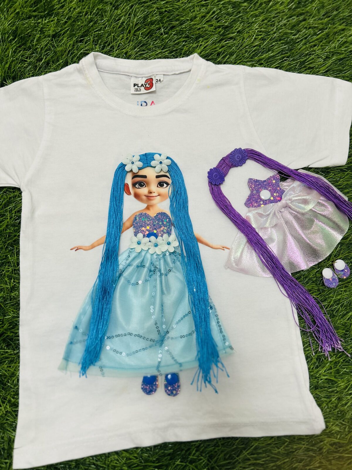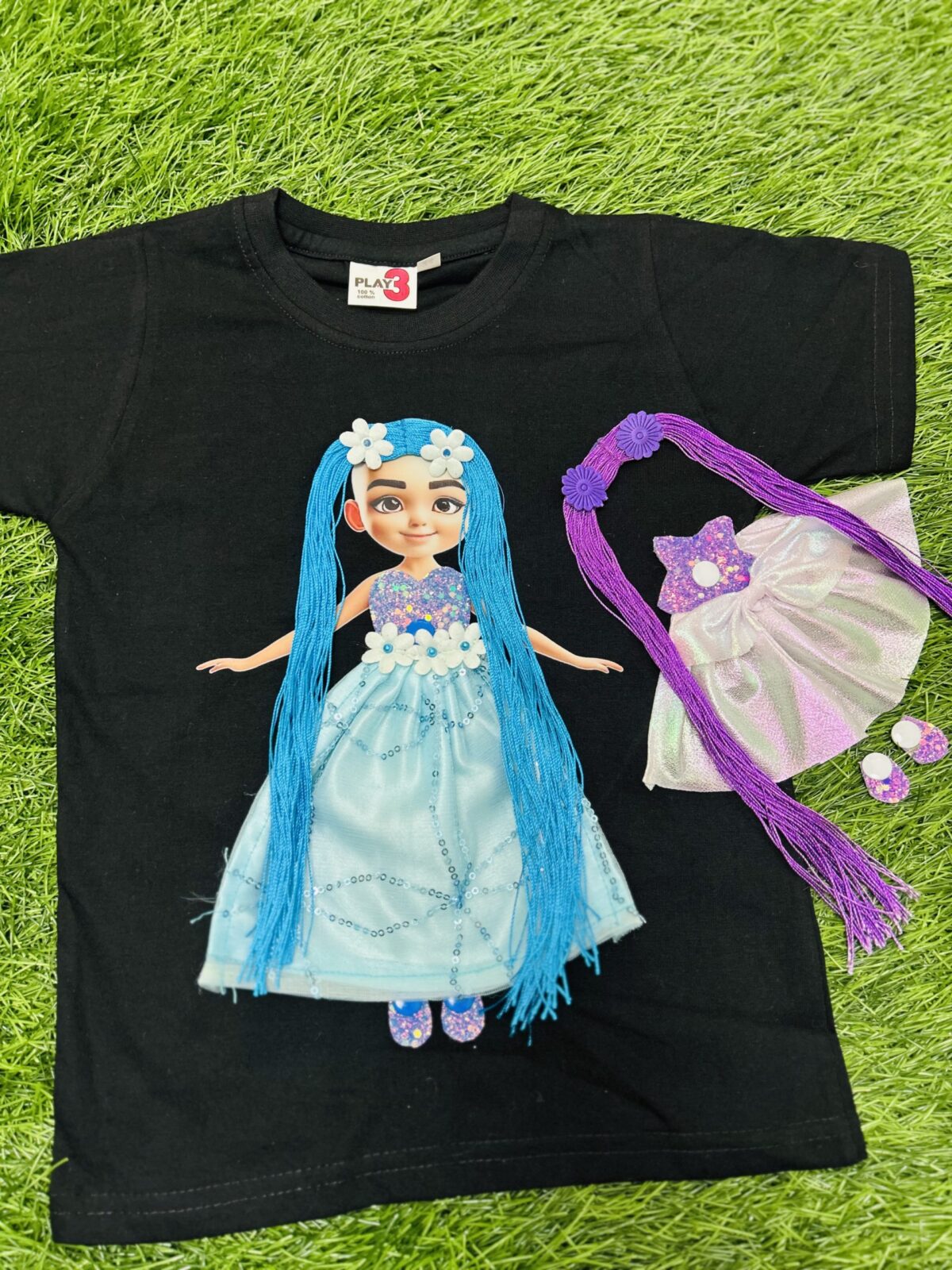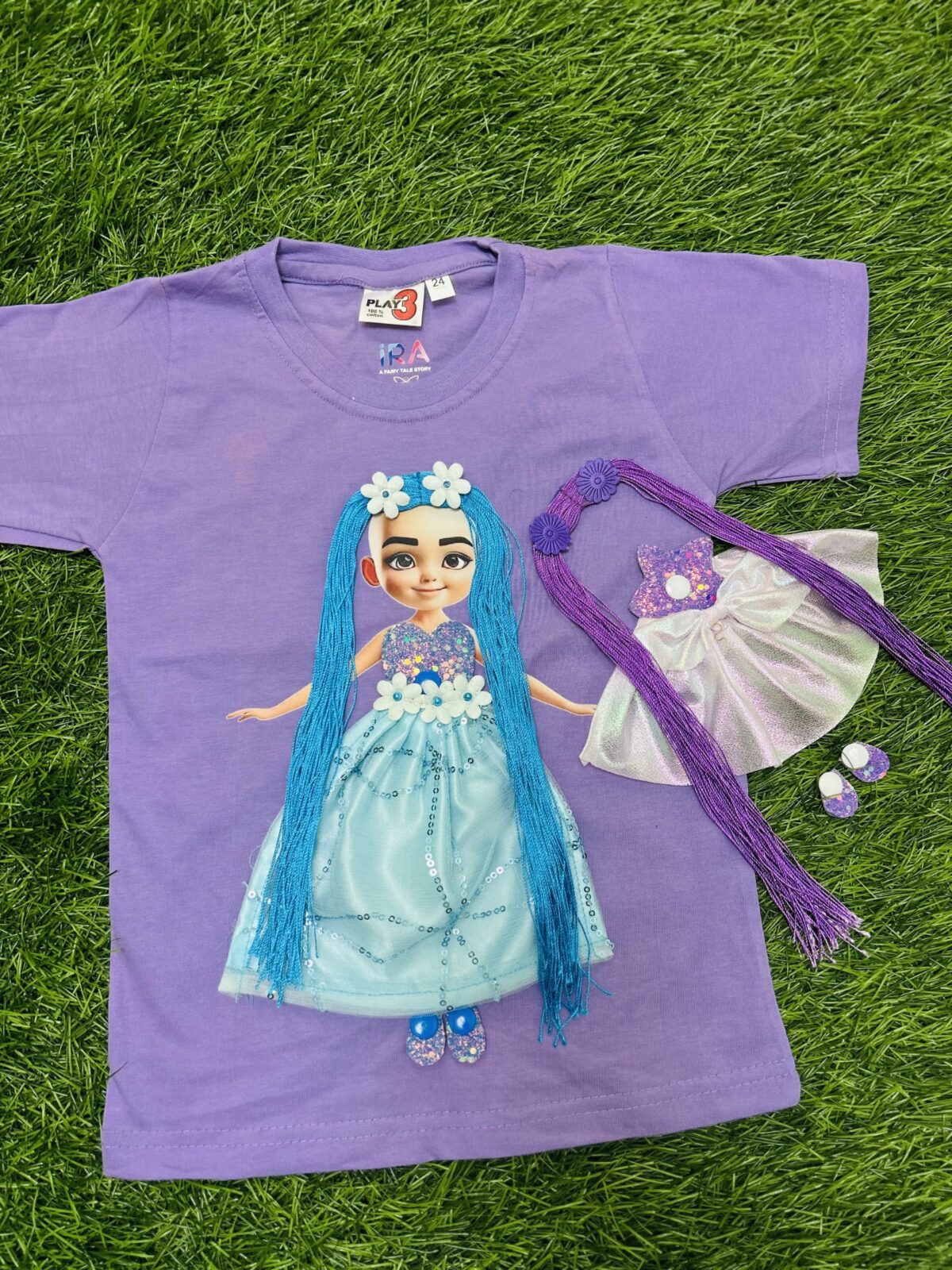 Magical Doll Fashion T-Shirt Set – Sky Blue & Star Purple Combo