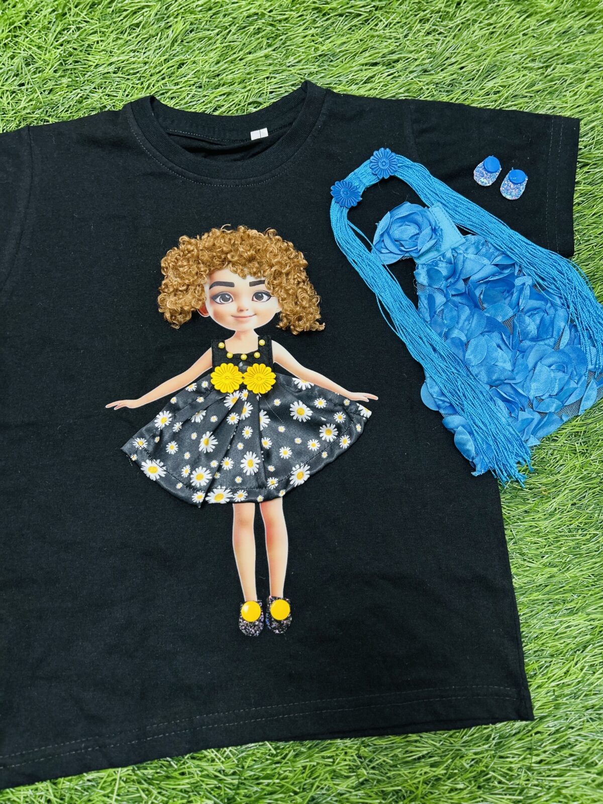 • Combo Includes: 1 T-shirt + 2 Doll Dresses + 2 Doll Hair Styles + 2 Pairs of Shoes