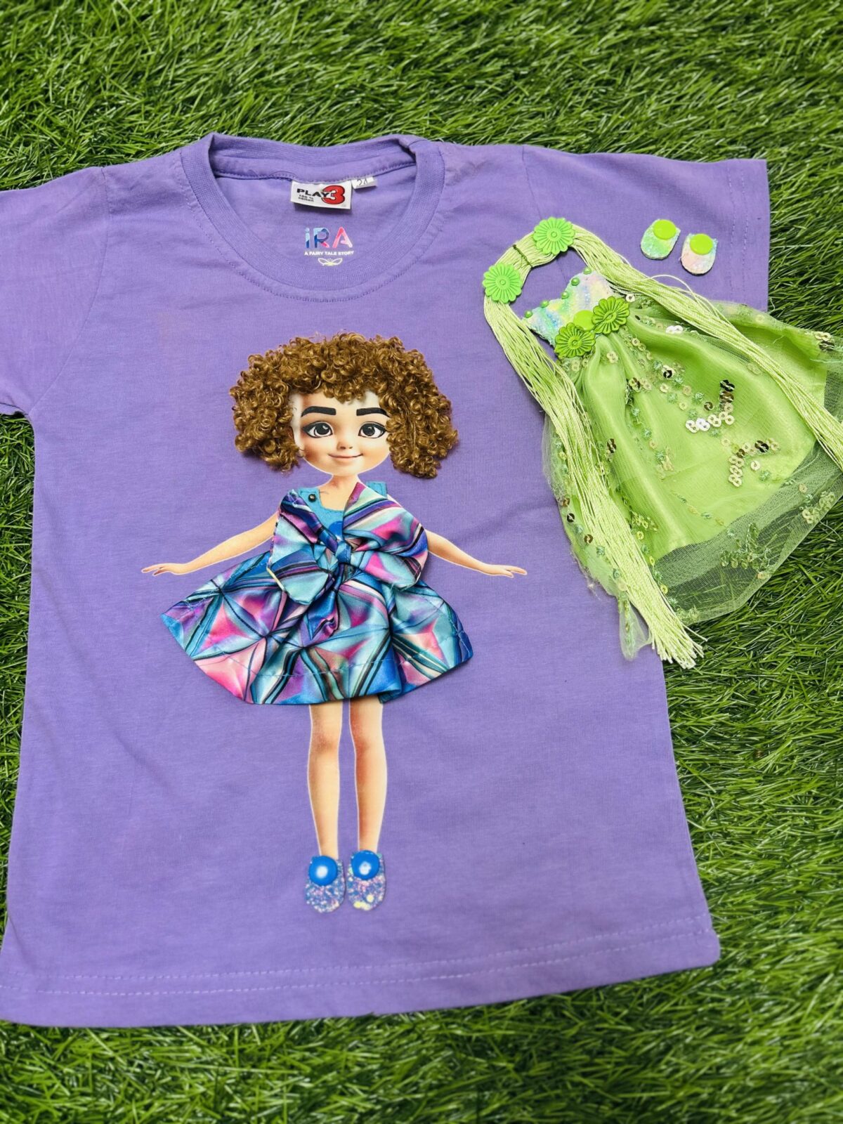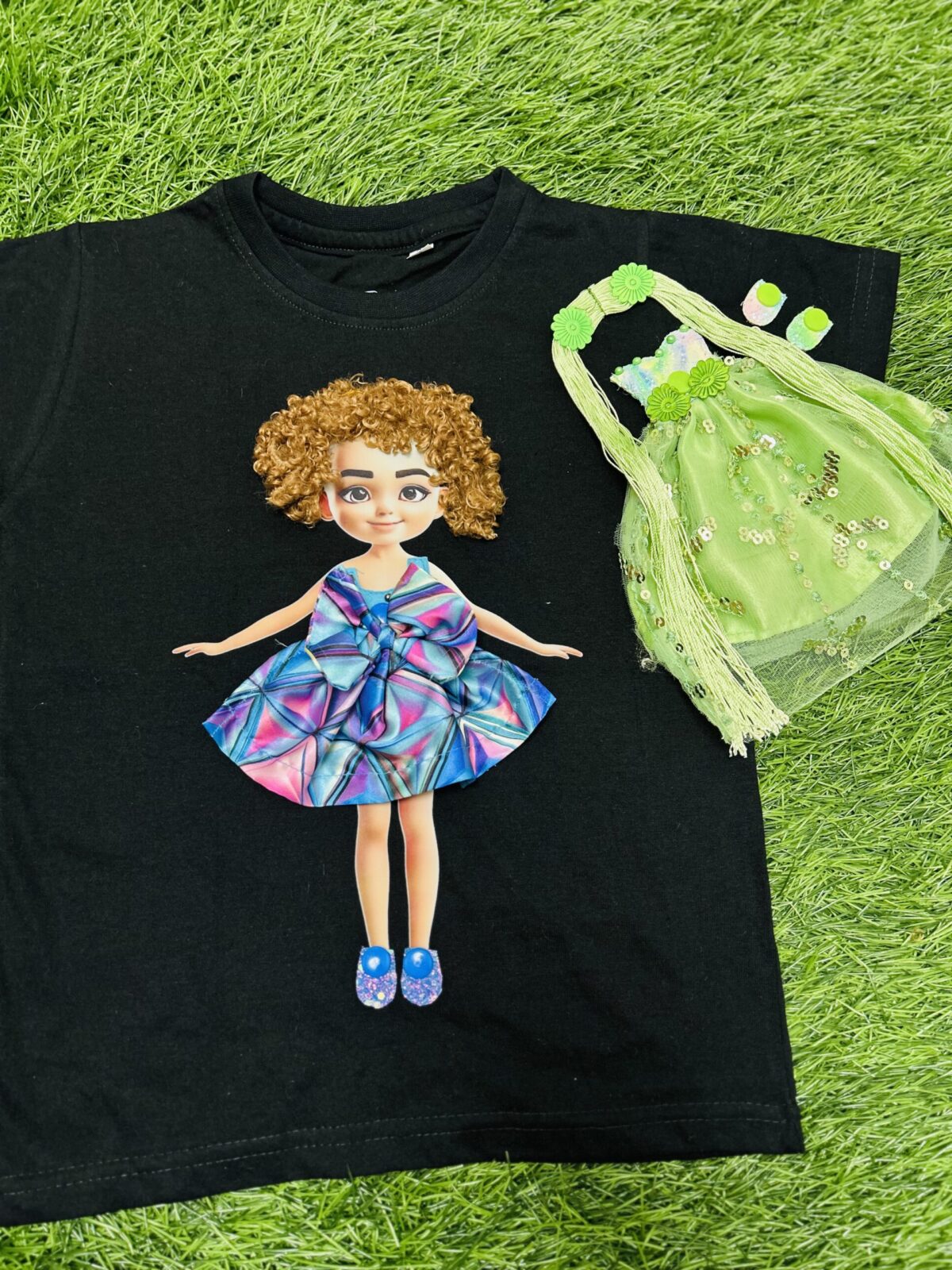 Magical Doll Fashion T-Shirt Set – Blue & Organza frill Green Combo