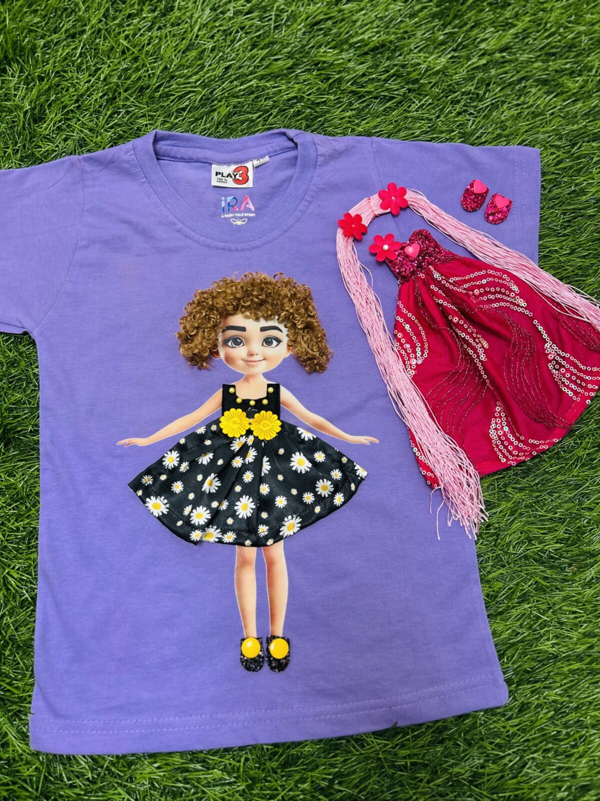 Magical Doll Fashion T-Shirt Set – Purple & Blue Combo ₹999.00