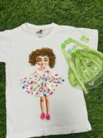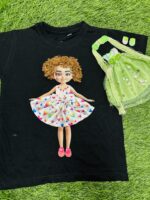 Magical Doll Fashion T-Shirt Set – Pink & Organza Frill Green Combo