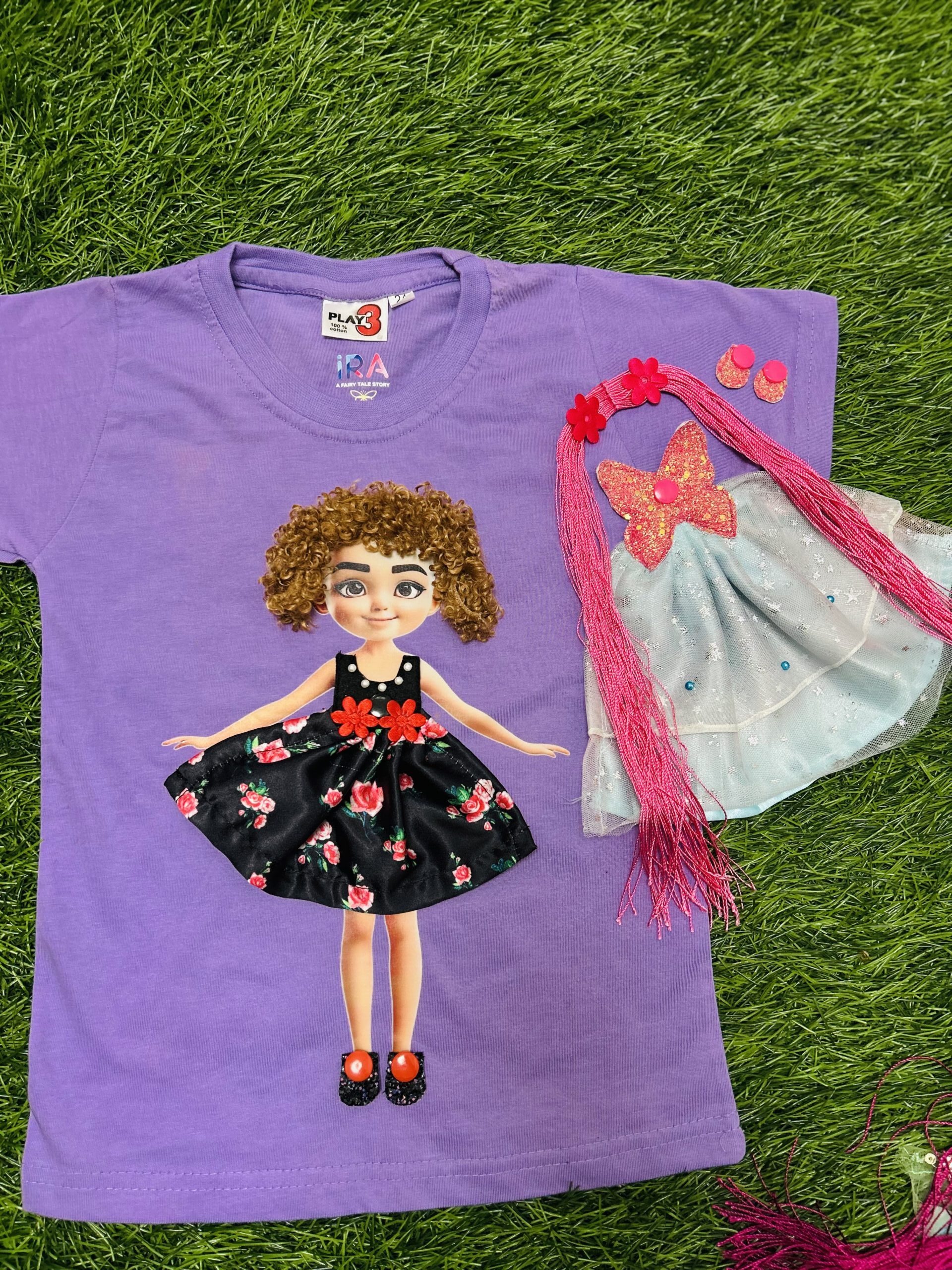 Magical Doll Fashion T-Shirt Set – Blue & Purple Combo