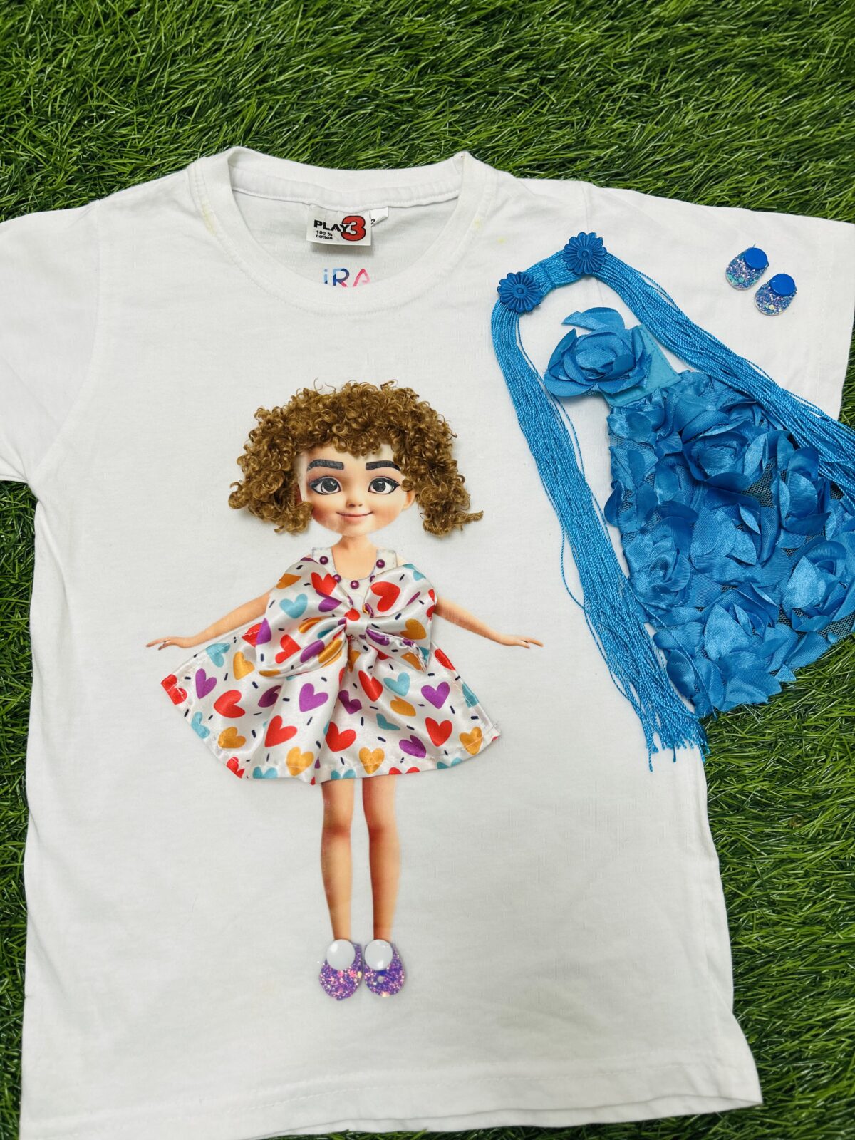 Magical Doll Fashion T-Shirt Set – Blue & Organza frill Green Combo