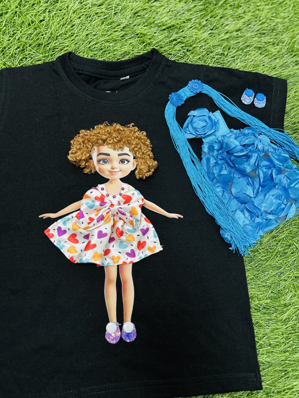 Magical Doll Fashion T-Shirt Set – Sky Blue & Black Combo